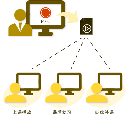 老师可将操作计算机的屏幕画面和语音讲解过程,直接录制成影片,以供教学使用。